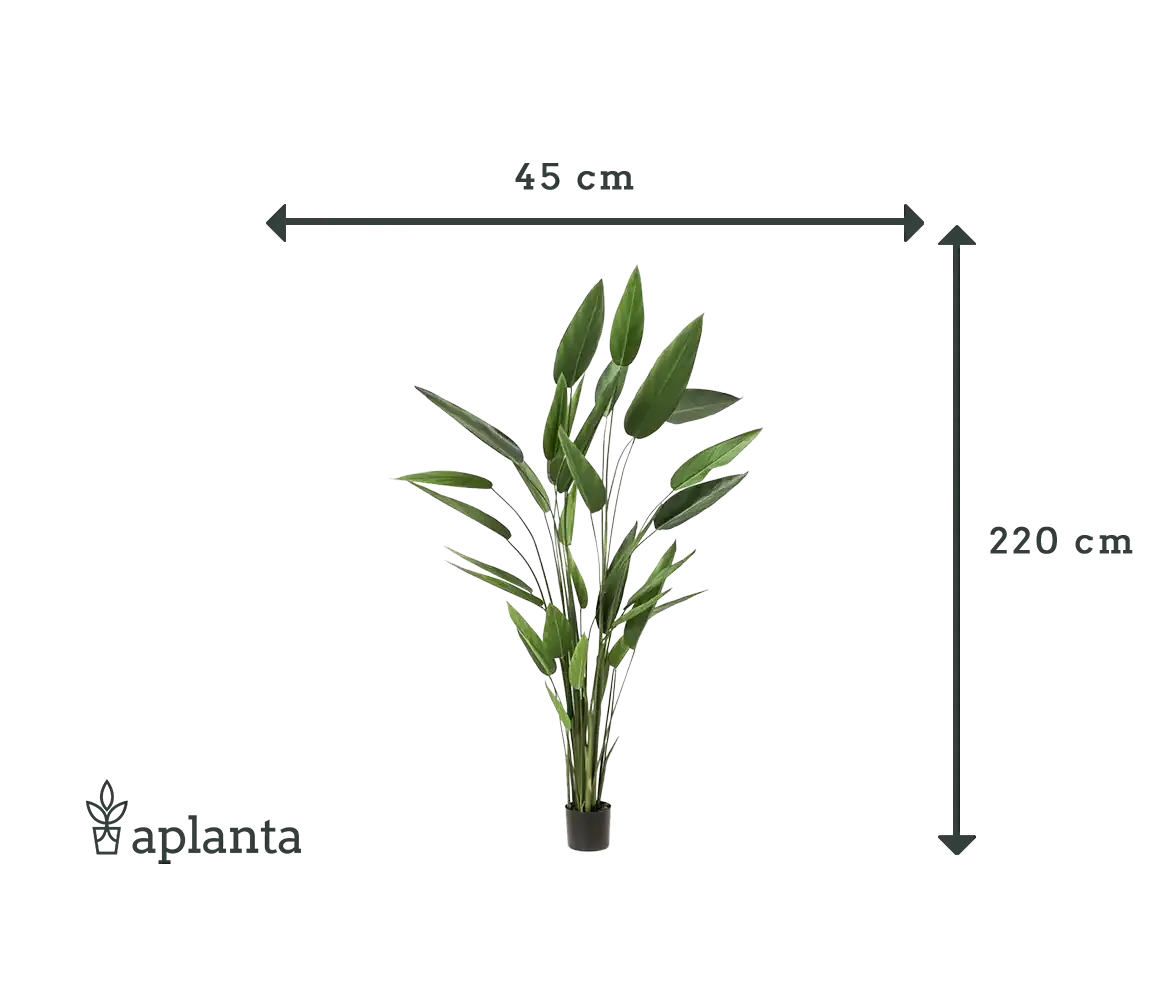 Frida, die künstliche Helikonie, ist eine atemberaubende Darstellung tropischer Pracht. Mit ihrer eindrucksvollen Höhe von 220 cm bringt sie die exotische Schönheit und das leuchtende Farbspiel einer echten Helikonie in dein Zuhause. Ihre großen, auffälligen Blätter und die charakteristischen, farbenfrohen Blütenstände sind ein visuelles Highlight, das Wärme und Lebensfreude ausstrahlt. Frida ist eine perfekte Wahl für alle, die sich nach einem exotischen Flair in ihren Räumen sehnen, aber den Pflegeaufwand echter Pflanzen scheuen.